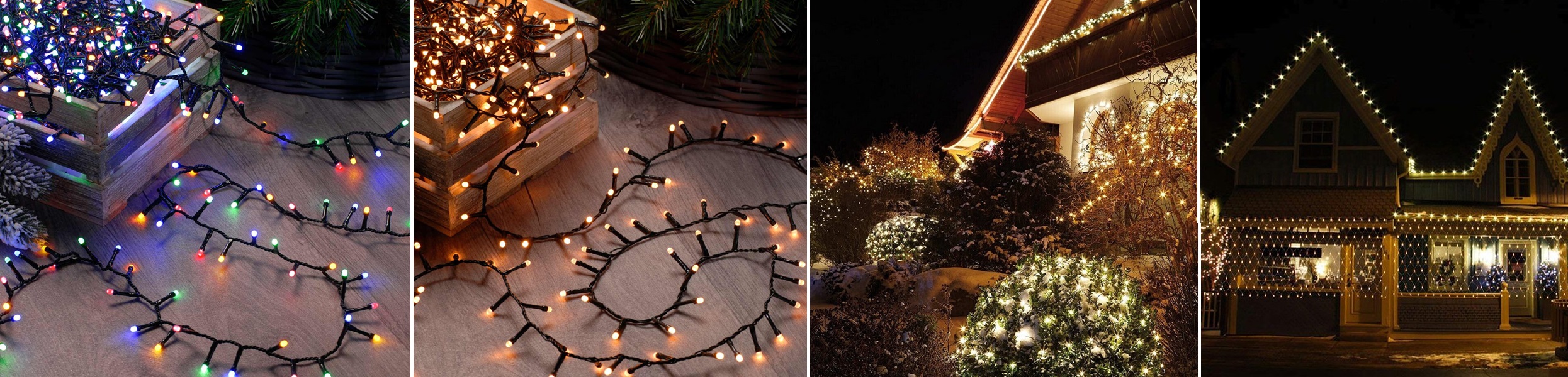 Te vrste luči pogosto pridejo v različnih barvah, vključno s tradicionalnimi belimi, toplimi belimi, hladno belimi, modrimi in barvnimi možnostmi. Poleg tega se lahko uporabljajo tako za notranje kot tudi za zunanje okraševanje, kar omogoča široko paleto možnosti pri ustvarjanju prazničnega vzdušja.
