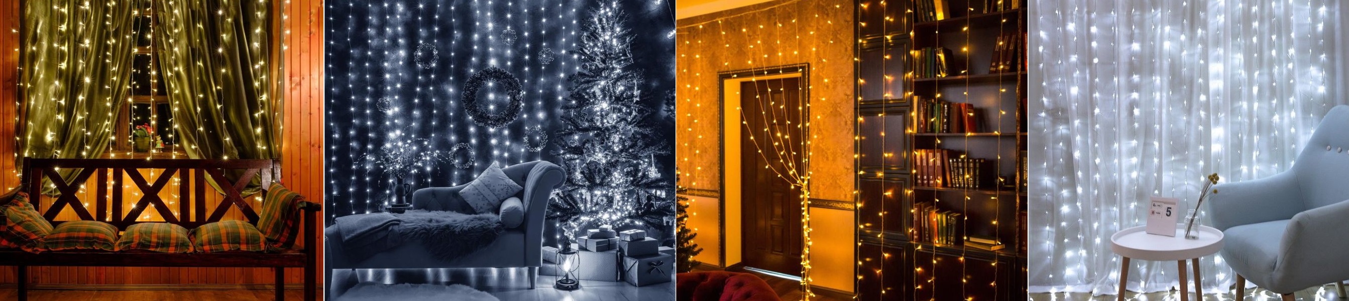 Svetlobne zavese so učinkovit način, kako hitro okrasiti velike površine, saj omogočajo enostavno namestitev in prilagajanje. Njihova gostota lučk in raznolikost barv in načinov svetenja omogočajo ustvarjanje različnih prazničnih vzdušij.