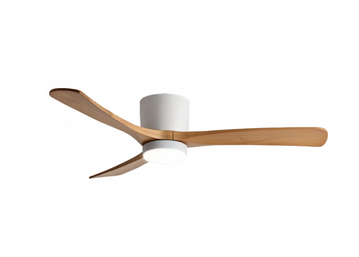 Ventilator odlikuje minimalističen in sodoben dizajn, ki se naslanja na skandinavski slog. Telo ventilatorja je v beli barvi, ki deluje čisto in diskretno, medtem ko so tri elegantne lopatice izdelane iz materiala v videzu svetlega lesa. Ta kombinacija daje ventilatorju topel in naraven značaj, zato se izvrstno ujema z lesenim pohištvom, naravnimi toni, ter prostori z veliko svetlobe ali rastlinja.