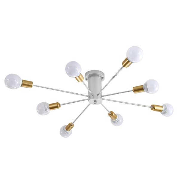 Ena največjih prednosti te svetilke je sistem 5 ločenih svetlobnih točk, ki uporabljajo standardni navoj E27. Zaradi tega je izbira svetlobnih virov popolnoma v vaših rokah. Žarnice niso vključene, kar pomeni, da lahko izberete LED, halogenske ali vintage filament žarnice – odvisno od želenega videza ali količine svetlobe. Standard E27 omogoča velik izbor barvnih temperatur, zato si lahko ustvarite popoln ambient: