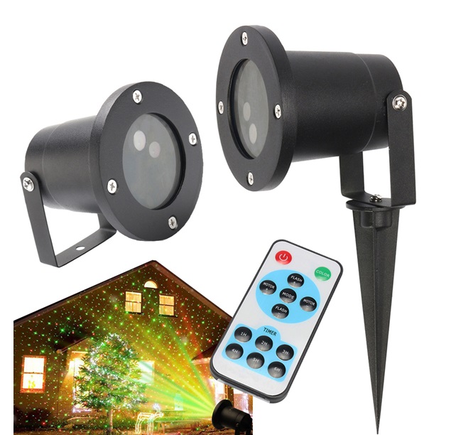 Med najbolj impresivnimi rešitvami so laserski božični projektorji, ki ustvarijo tisoče drobnih svetlobnih pikic v rdeči, zeleni ali kombinirani barvi. Laserski projektorji so izjemno intenzivni, zato so posebej primerni za večje površine – celotne fasade, visoke zidove, vrtne hiške ali velike notranje prostore. Laserska projekcija je jasna, močna in vidna tudi na daljše razdalje, zato so takšni projektorji popolni za zunanjo božično dekoracijo.