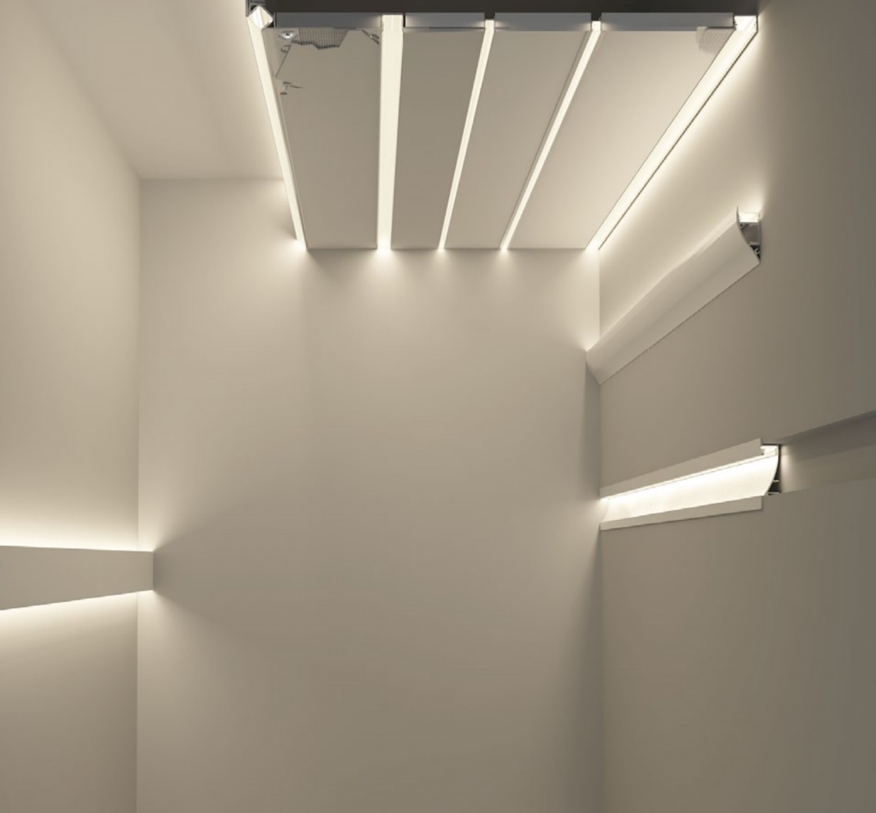 Alu profili za mavčne plošče: Posebej oblikovani za uporabo z mavčnimi ploščami, ti profili so idealni za ustvarjanje sodobnih in elegantnih svetlobnih rešitev.