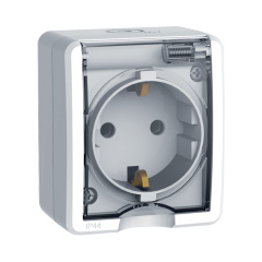 - Nadometne vtičnice z zaščito pred vodo in prahom (IP44 ali višje): Te vtičnice so namenjene predvsem zunanji uporabi ali uporabi v vlažnih in prašnih prostorih, kot so kopalnice, delavnice, industrijski objekti in zunanje površine. Zasnovane so tako, da so odporne na dež, prah in druge zunanje vplive, kar omogoča varno uporabo tudi v zahtevnih okoljih.